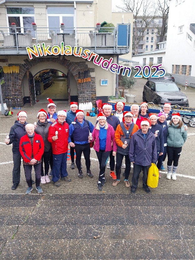 Zum Saisonabschluss schließlich das Nikolausrudern. Am 6. Dezember startete die Wanderfahrt von Neuwied nach Bad Honnef mit vier Booten und 19 Teilnehmern, abgerundet durch ein gemütliches Treffen im Clubraum und wärmendem Lagerfeuer im Innenhof der NRG.
